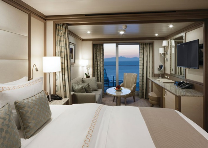 | SV - Superior Veranda Suite 29 m² + balkón 6 m². Spálňa s oddeliteľnou obývacou časťou. 7,8,9. vpredu. Max 3 osoby. | 8 400 € 8 400 € za osobu | ||